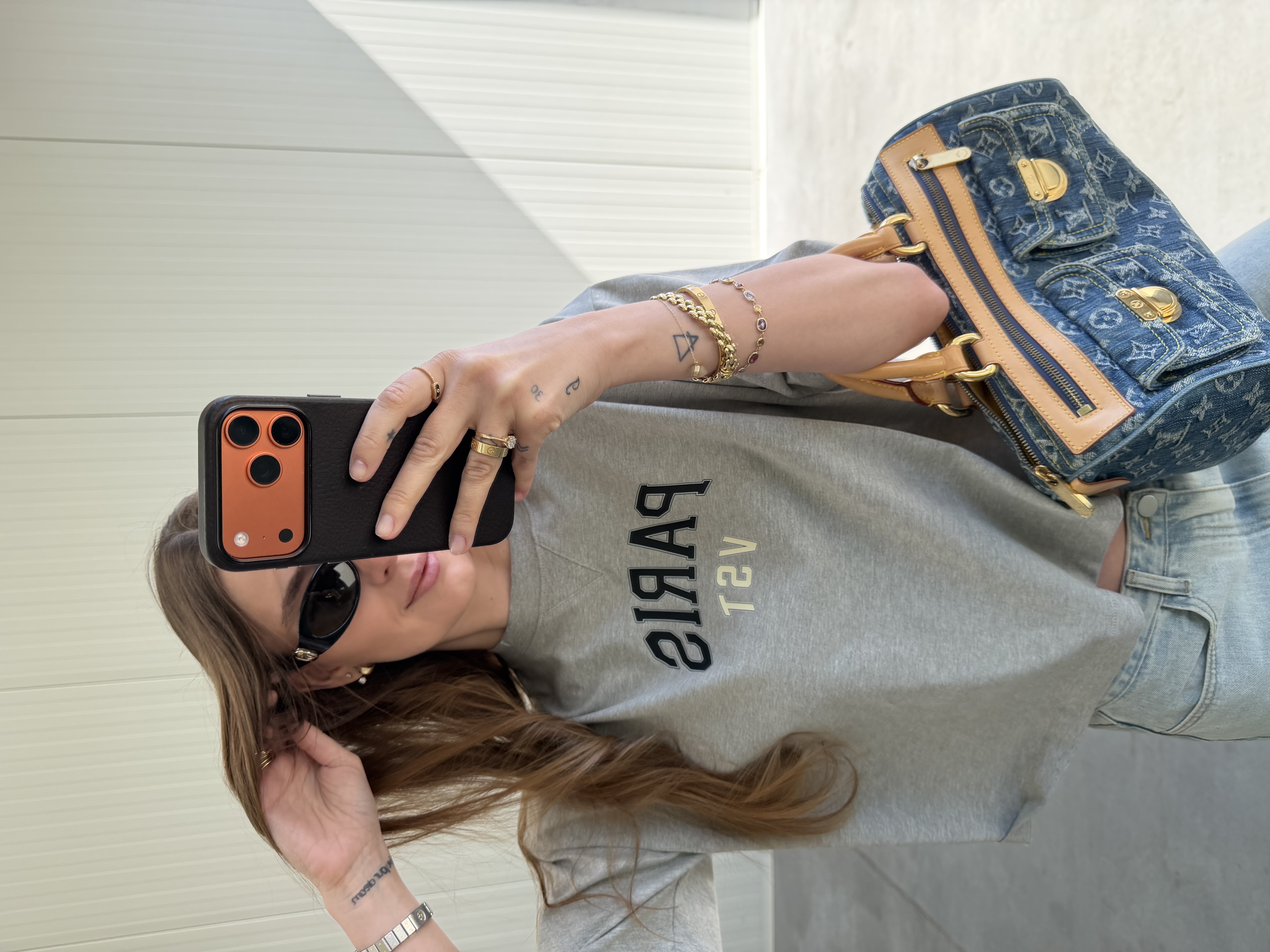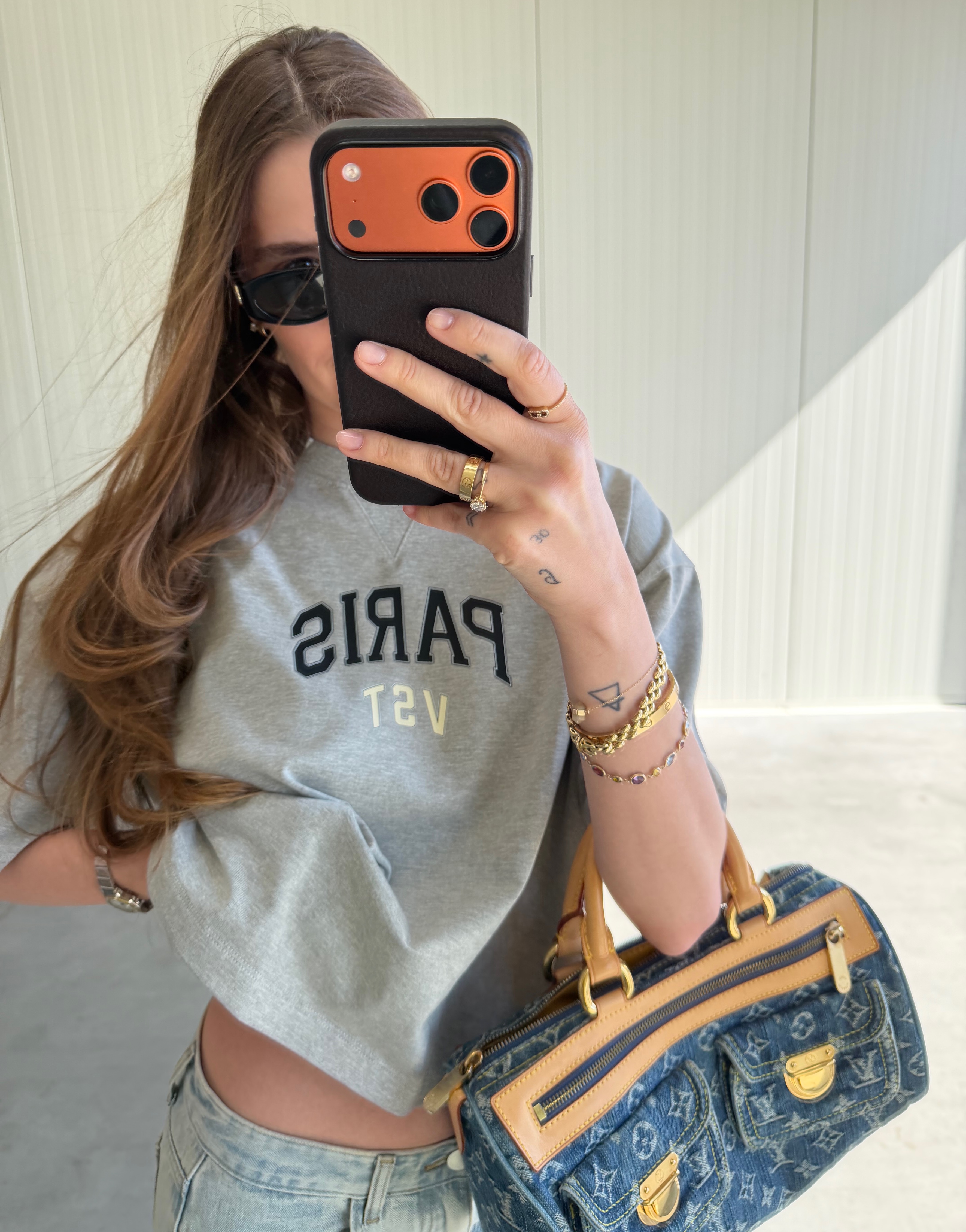 Koszulka z Poduszkami "PARIS" Szary Melanż T-shirt
